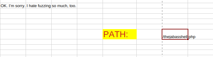 The password was quickly found: john11. After opening the file with LibreOffice and the password, I found a reference to a potential web shell: thejabasshell.php.