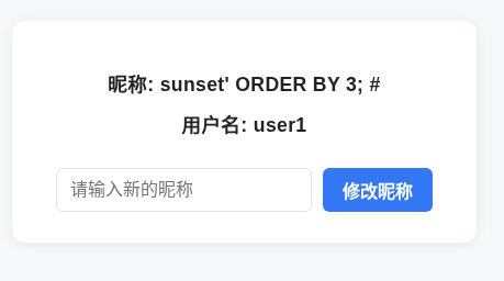 I found a potential vulnerability on the /myinfo endpoint. When you change your nickname (昵称) to an existing user like ta0 or sunset, it displays their motto. This looked like a SQL Injection.