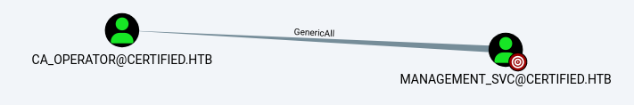 In bloodhound, we noticed that management_svc had GenericAll privileges over the CA_OPERATOR account.