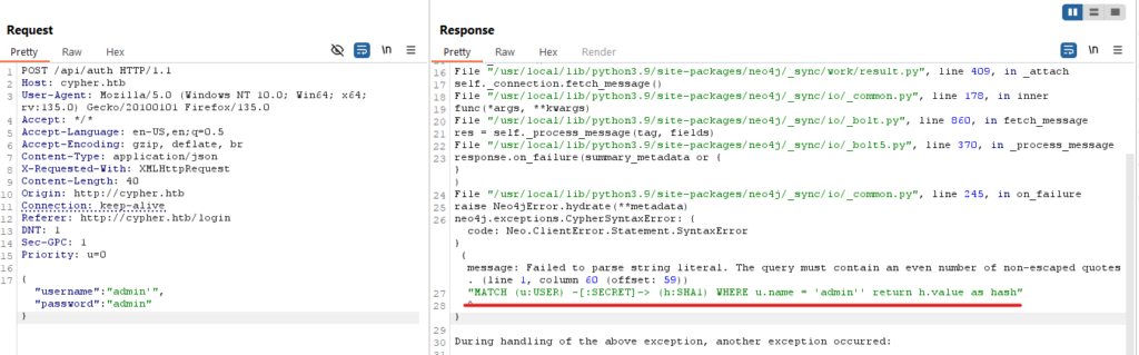 A Cypher injection vulnerability tied to a Neo4j database? The machine’s name suddenly makes sense. We’re juggling two weaknesses now—a command injection in the .jar and a Cypher injection in the login. Time to forge our master key!