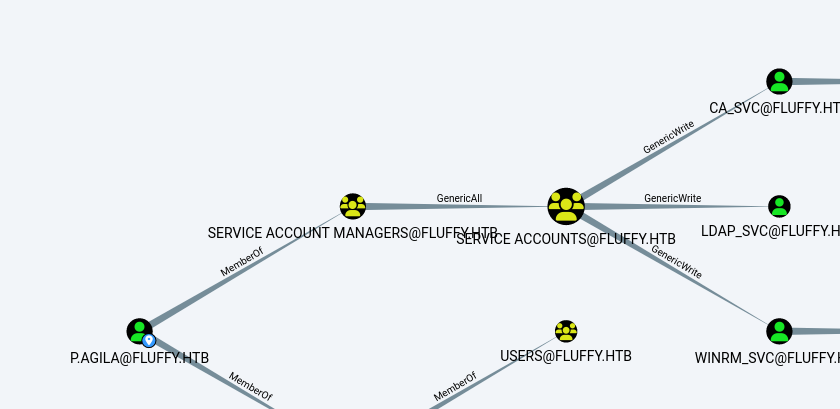 So, we found that the user p.agila is a member of the 'SERVICE ACCOUNT MANAGERS' group, which has permissions over the 'SERVICE ACCOUNT' group.