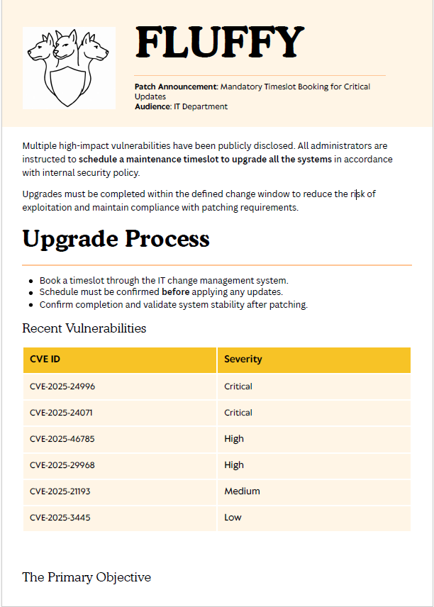 Hello, today we're going to try to hack the new machine 'Fluffy Season 8' on Hack The Box, so let's get started!"